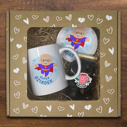 ( ilość produktów: 4 )Zestaw prezentowy w kartoniku w serduszka - kubek Dziadek ma świetny gust + herbata