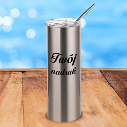 Prosty, srebrny kubek 600 ml z podwójnymi ściankami i słomką z Twoim nadrukiem