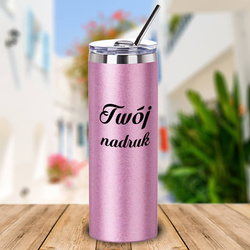 Różowy kubek Glitter 600 ml z podwójnymi ściankami i słomką z Twoim nadrukiem