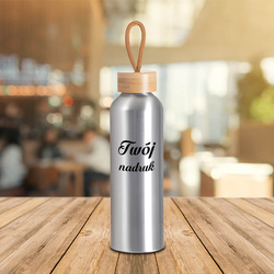Srebrna butelka aluminiowa z bambusową zakrętką z Twoim nadrukiem