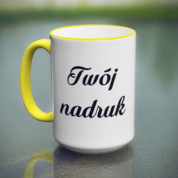 Duży kubek XXL z żółtym uszkiem z Twoim nadrukiem