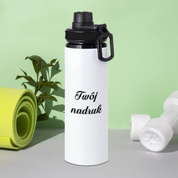 Biały bidon 850 ml - z rączką i zamykanym ustnikiem - z Twoim nadrukiem - czarna opaska