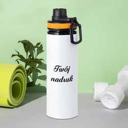 Biały bidon 850 ml - z rączką i zamykanym ustnikiem - z Twoim nadrukiem - żółta opaska