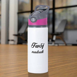 Biały bidon 650 ml z Twoim nadrukiem różowa wstawka