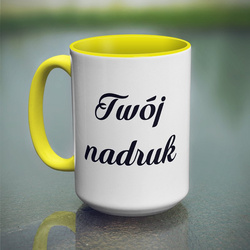 Duży kubek XXL z żółtym wnętrzem i uszkiem z Twoim nadrukiem