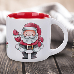 Świąteczny kubek z czerwonym wnętrzem - Mikołaj