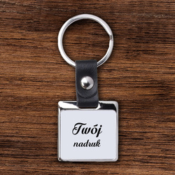 Kwadratowy metalowy brelok z czarnym paskiem z Twoim zdjęciem