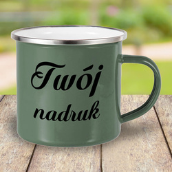 Szarozielony kubek metalowy, emaliowany z Twoim nadrukiem