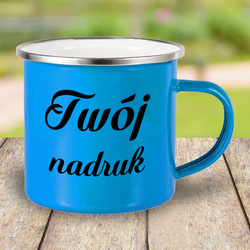 Niebieski kubek metalowy, emaliowany z Twoim nadrukiem
