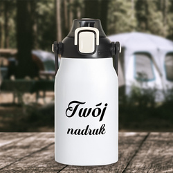 Biała butelka aluminiowa z bambusową zakrętką z Twoim nadrukiem