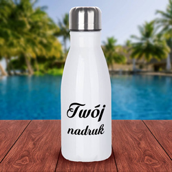 Biała butelka metalowa 450 ml z dowolnym nadrukiem